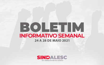 ler maisBoletim Informativo Semanal (24 a 28/05) Conheça os trabalhos desenvolvidos pelo SINDALESC nesta semana Na última quarta-feira (26/05), o SINDALESC esteve junto com os dirigentes de muitas entidades sindicais do Estado e Municipais para protestar junto ao prédio do...